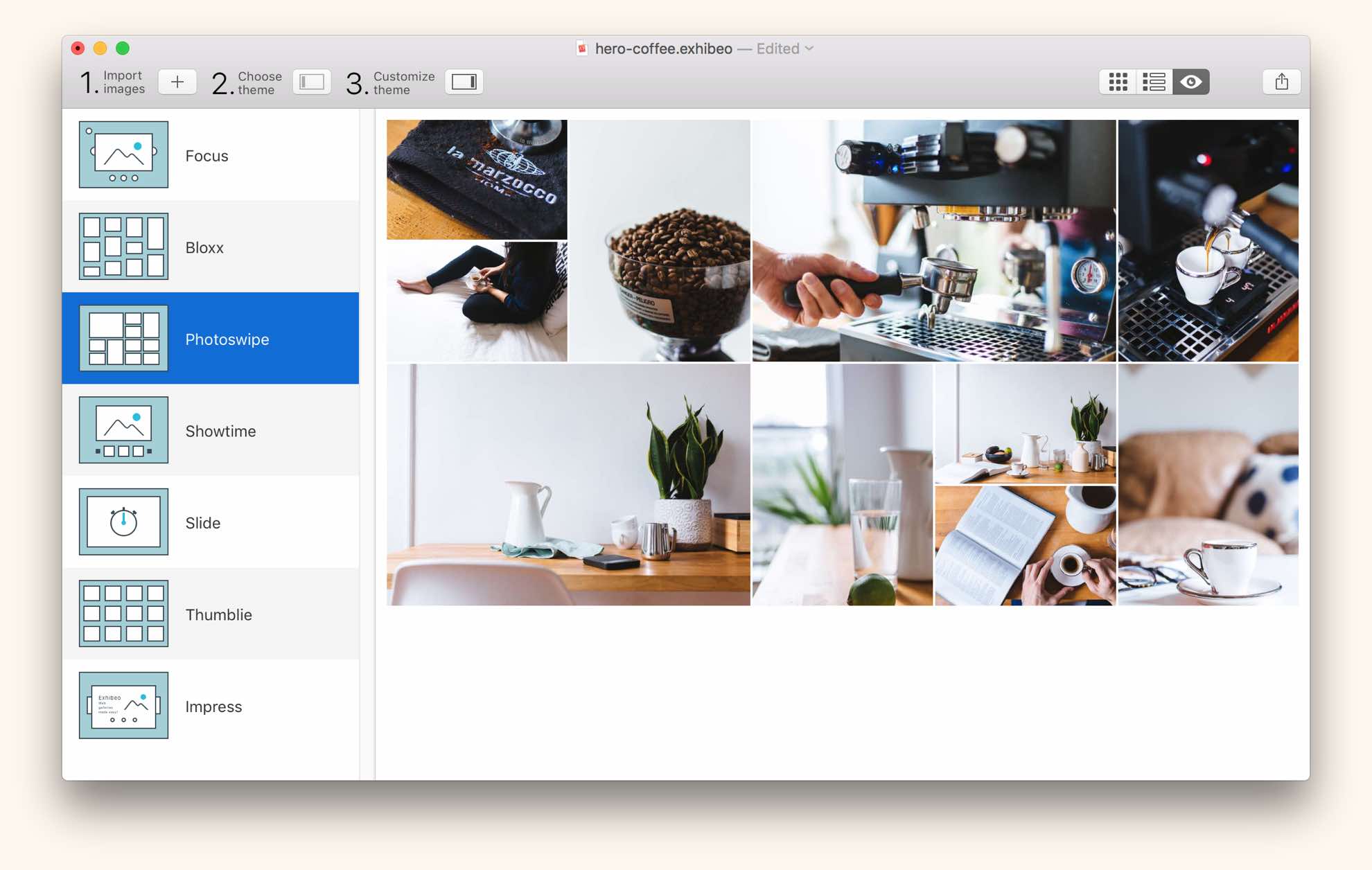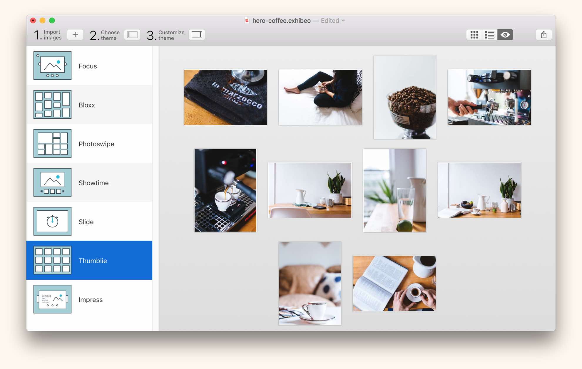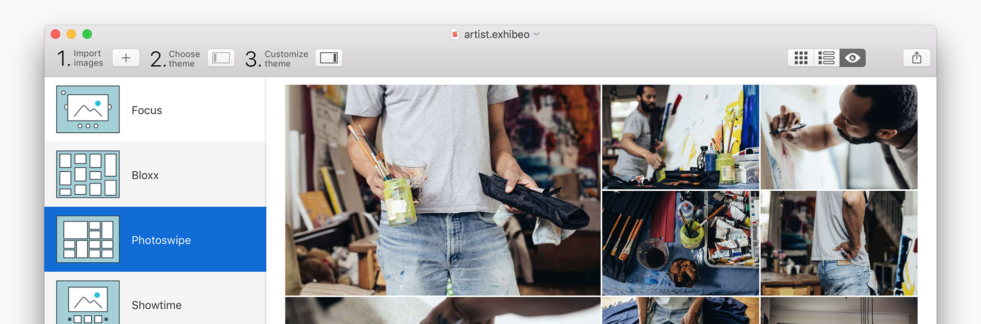 Create web-based photo galleries with ease in Exhibeo 2 for Mac.