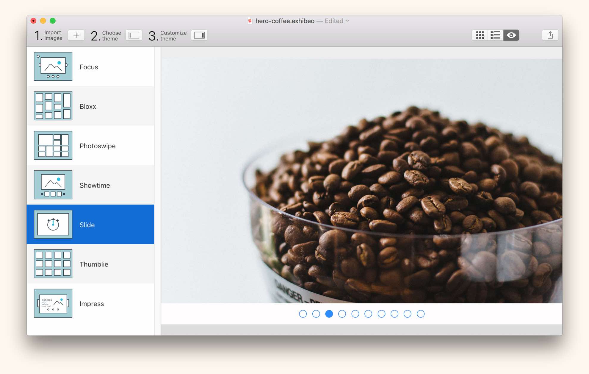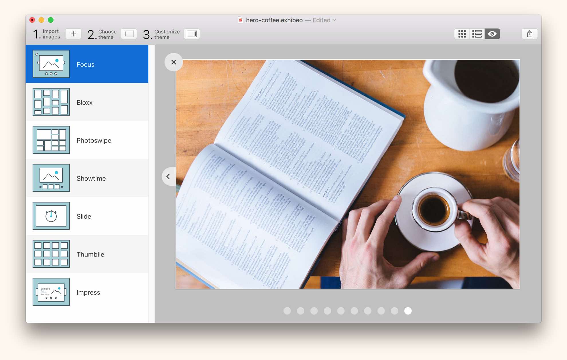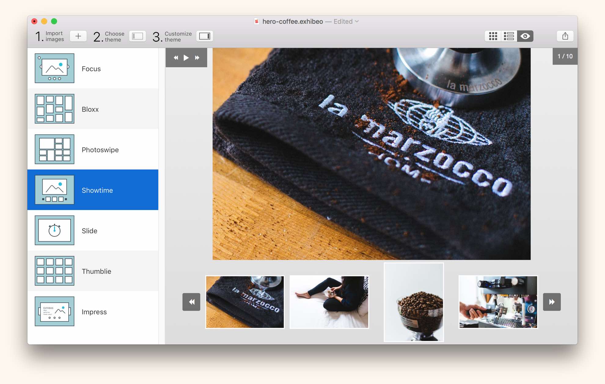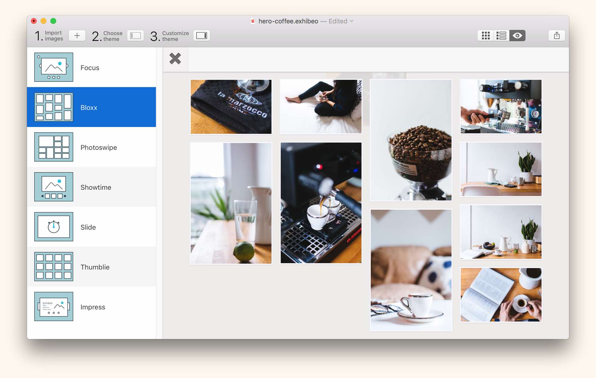 Create web-based photo galleries with ease in Exhibeo 2 for Mac.